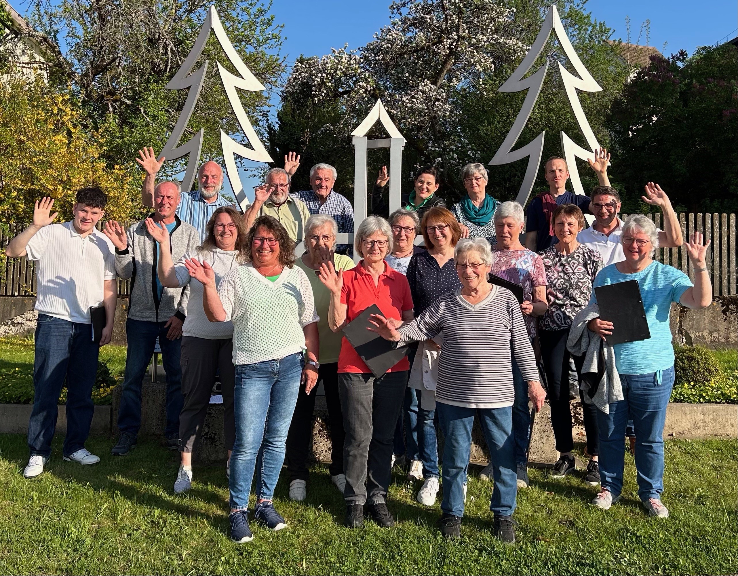 Wir sind eine fröhliche Gruppe, Alter egal, 20 Chormitglieder.