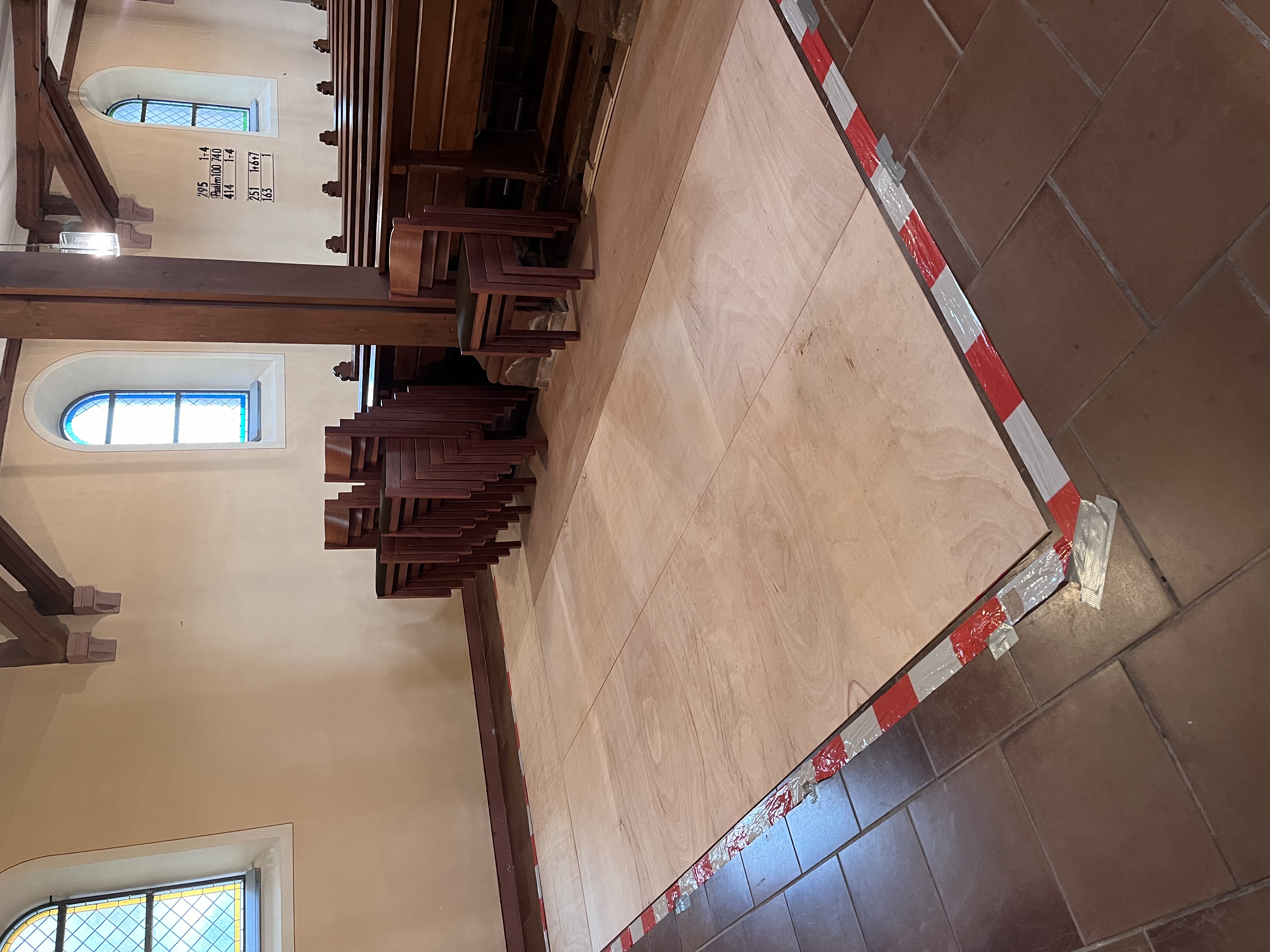 Seit Jahren sind wir dran, dass im hinteren Teil der Kirche ein paar Bänke entfernt werden dürfen, um Platz für Kinderwägen, Rollstühle, Rollatoren oder auch Platz für Ständerlinge zu haben. Jetzt hat das Denkmalamt diesem endlich zugestimmt, so dass die neuen Bodenfliesen bestellt werden können.